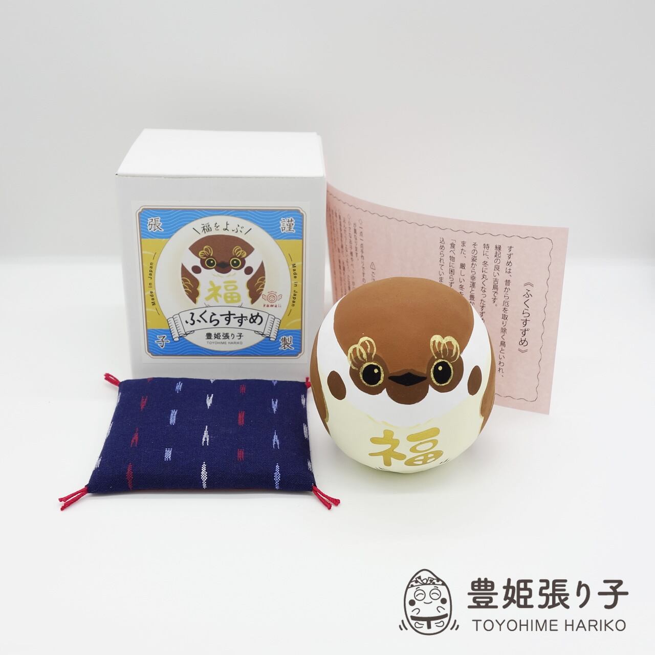 こちらの商品は、かすり生地で作った張り子用のお座布団と「ふくらすずめ」のお得なセットでの販売です。